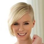 Blonde cutie in stockings Nikky Thorne is touching her delightful shaved cunt
