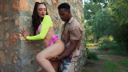 Great interracial outdoor XXX scene with sassy brunette Theodora Day
